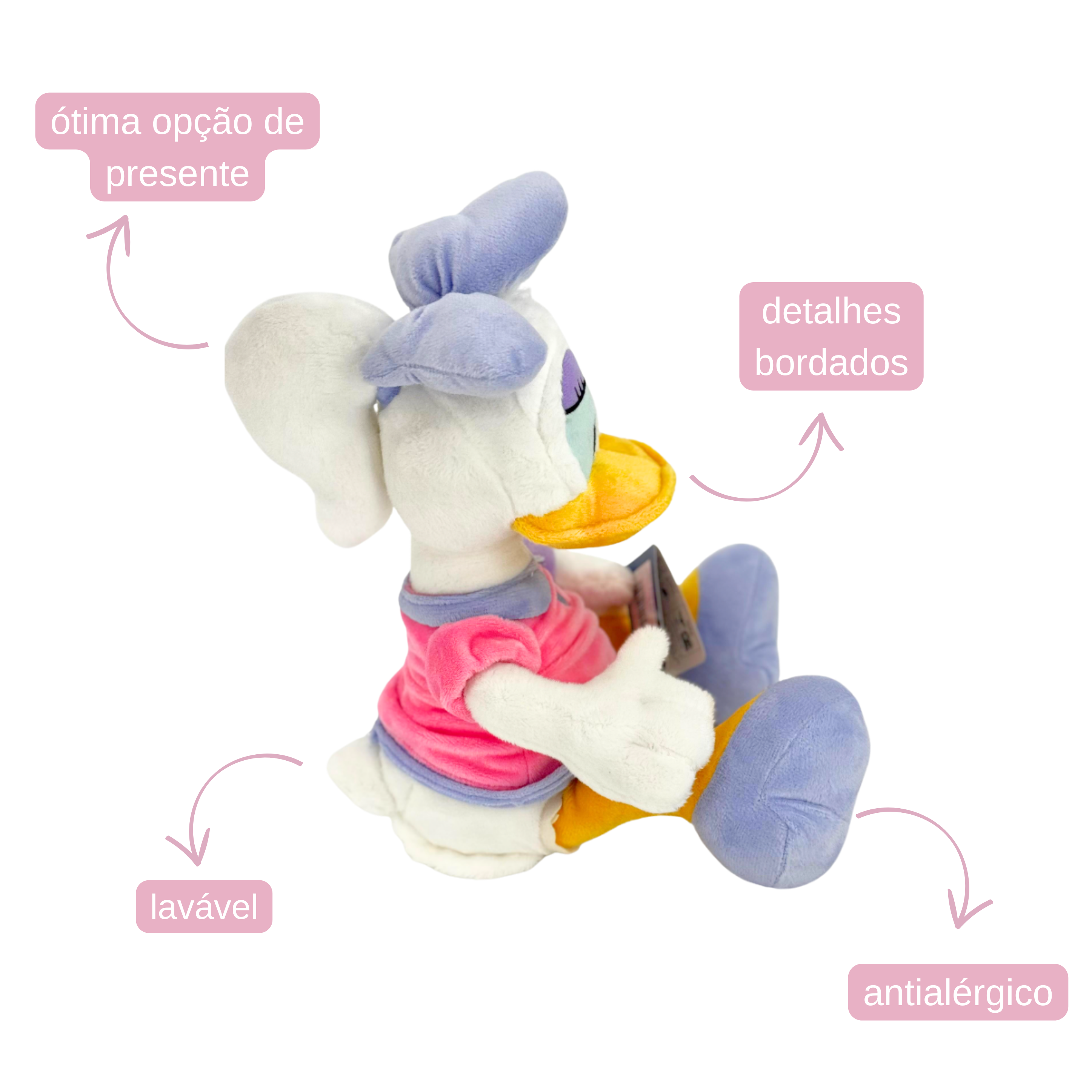 Com seu laço icônico e expressão delicada, essa pelúcia conquista fãs de todas as idades. Macia, bem-acabada e cheia de estilo, é perfeita para decorar, brincar ou presentear quem ama o universo Disney.