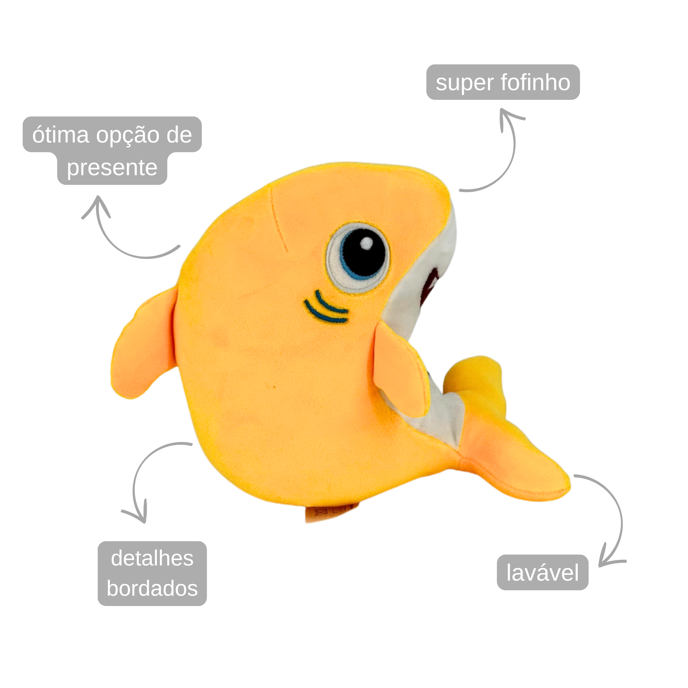 Produzido com materiais de alta qualidade, o tubarão de pelúcia possui barbatanas fofinhas, olhinhos expressivos e uma textura supermacia. Seu design colorido deixa o brinquedo ainda mais divertido e especial, conquistando crianças e adultos.