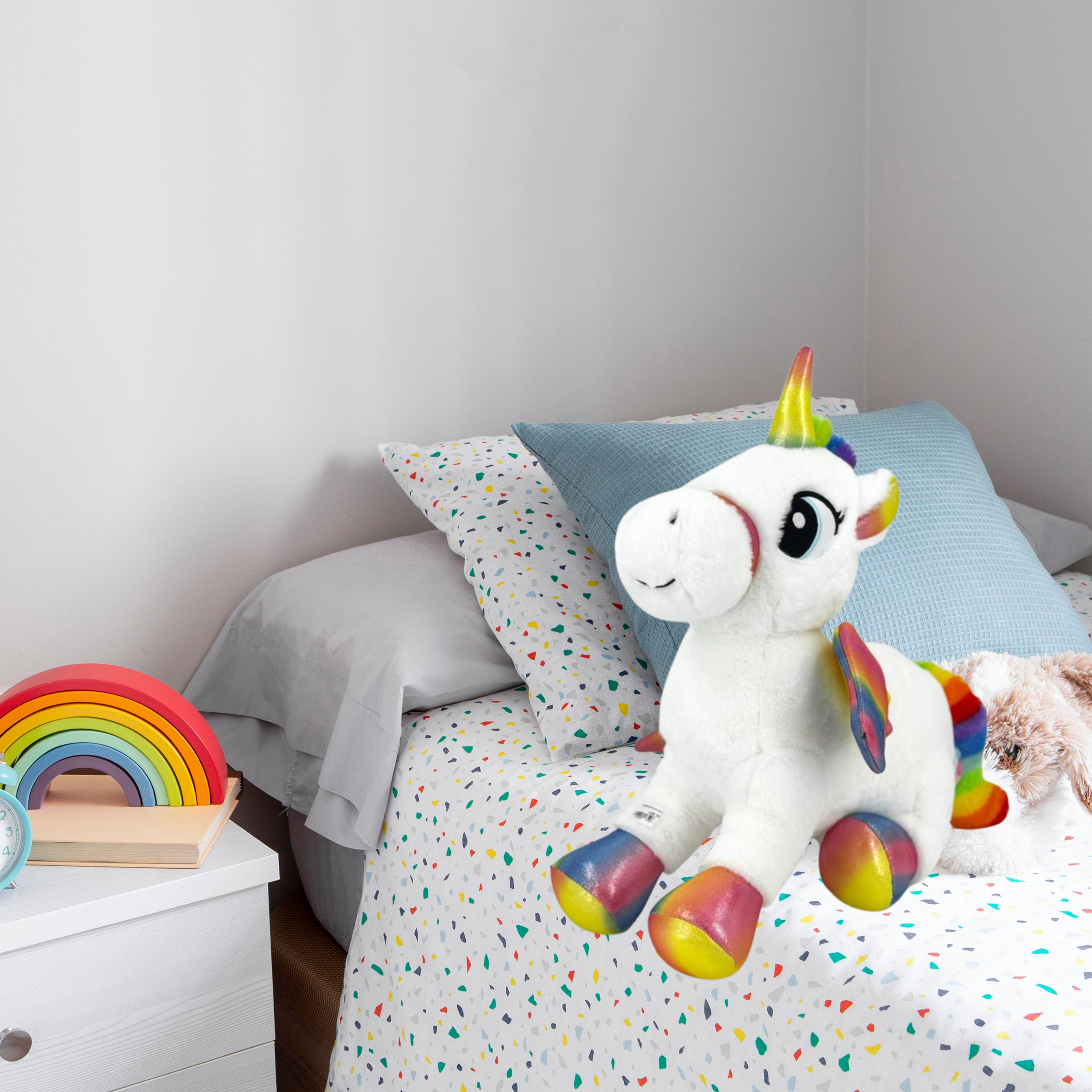 Detalhes encantadores: A almofada de unicórnio vem com um chifre reluzente, orelhas delicadas e uma crina macia e vibrante. Seus olhos expressivos e um design amigável tornam cada pelúcia única e especial.